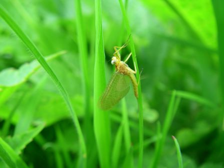 Les mouches du jour : pas d’olives cet après-midi, mais quelques sedges, et surtout, une retombée massive de perles jaunes (plécoptères ?). La 39 cm que je ferai vers 15h me donnera du fil à retordre.