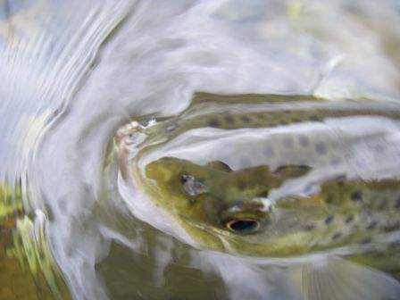 Au moins 4 poissons, surement des truites, certains gobages sont … denses !