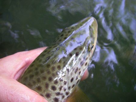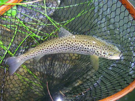 S’en suit un démarrage furieux de sa part, une belle gamelle dans la pente pour ma part, et probablement quelques trous dans les waders, au niveau du c.l grce aux ronces qui poussent sur la pente. Elle est belle, combat en force, et se rendra au bout de quelques instants, mécontente d’avoir été dérangée dans sa retraite tranquille. Une bien belle fario de Louhossoa. Un bisou et elle repartira dans sa Nive, pas trop malheureuse sur ce coup.