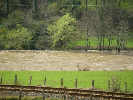 Montée à 3,5 m à OSSES, elle est redescendue aujourd’hui mercredi 26 mars à 2 m, mais remonte depuis quelques heures. Si vous voyez ce qu’il tombe ! La pêche est foutue pour encore au moins 4 jours à ce rythme. Les quelques photos qui suivent vous montreront un peu cette crue à Louhossoa, Bidarray, et en aval de Baigorry.