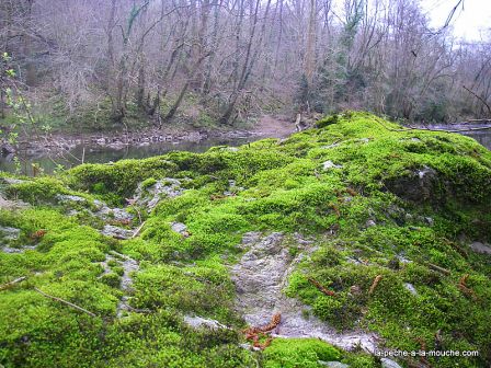 … ne pas s’affoler, laisser le courant emporter la soie, la tendre, tirer la mouche qui au final bascule très souvent sans s’accrocher à la branche. Coup de chance, c’est bien ce qui se passe. La mouche tombe sur l’eau, prête à être relancée. Deux faux lancers et la pointe passe entre les branches. La mouche tombe dans la bonne veine, 1 mètre en amont de la truite. Le posé est flasque, donc la dérive est bonne. Ce mètre dure une éternité …