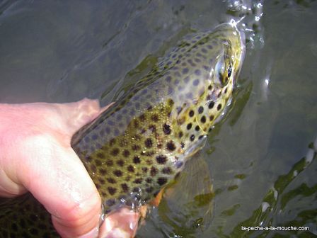 Je verrai 3 ou 4 autres truites en remontant cette bordure. Très dures à surprendre car toutes, contre la bordure, dans peu d’eau, dans des retournes ou calmes avec peu de courant. Rien à faire.